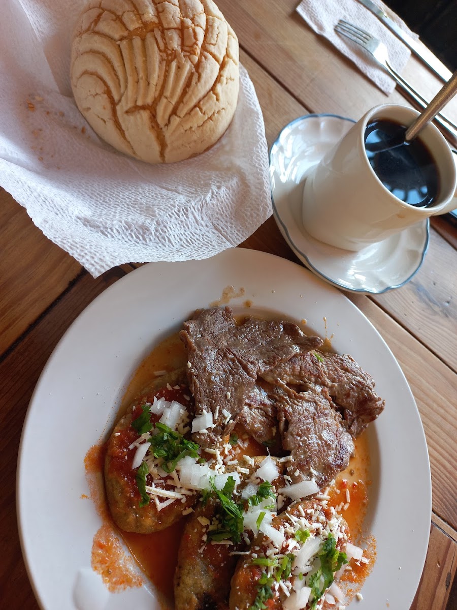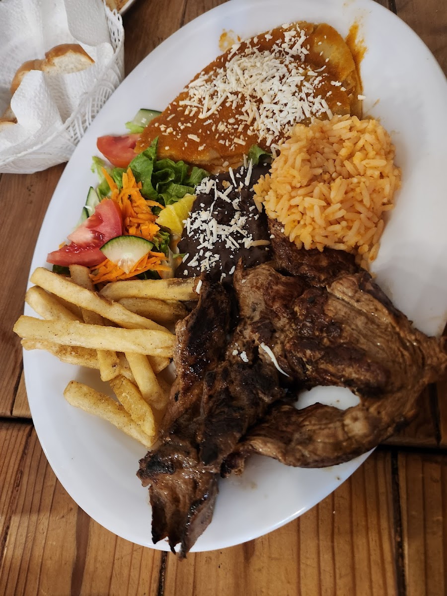 The menu draws heavily on Mexican regional fare, with a focus on hearty meat cuts and local specialties. Visitors often find themselves choosing from a range of grilled offerings like ribeye and arrachera, as well as traditional dishes such as tlayoyos, molcajetes featuring cecina or seafood, and freshly made tortillas. The selection of enchiladas—from rojas to suizas verdes—and classic breakfasts like chilaquiles provide a comforting variety that suits both locals and travelers looking for authentic flavors.